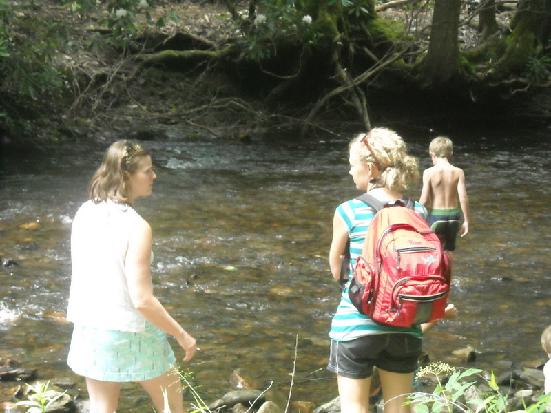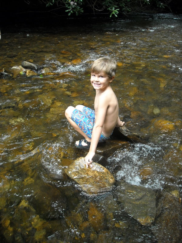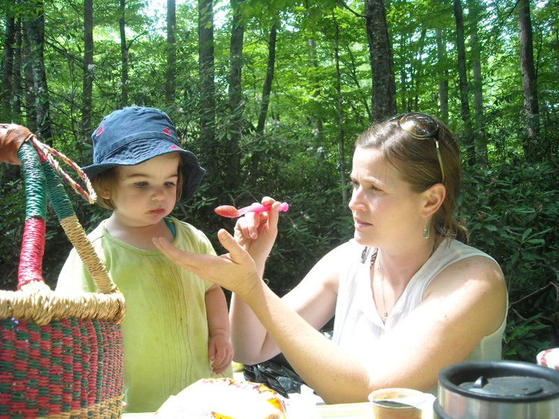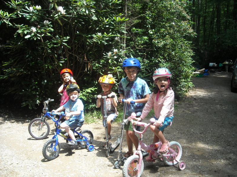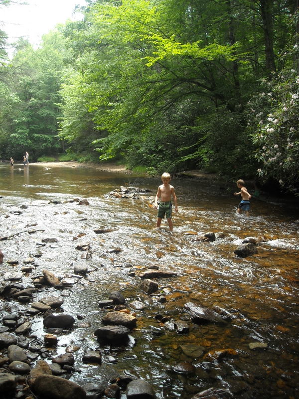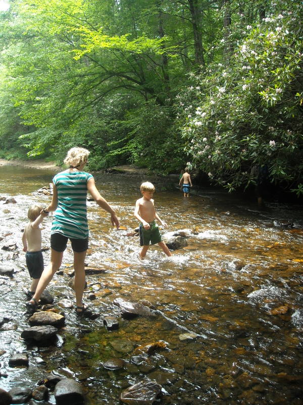 We recently went on a weekend trip to the Standing Indian campground in Franklin, NC, in the Nantahala National Forest with our best friends and their beautiful trio of babes. We had a great time despite the hard work of camping with 6 children (our 3 and their 3) and all that entails and my getting very sick halfway through the weekend. Jason was able to do what he loves which is dig around in the earth looking for native creatures. I just got to enjoy the company of my girl and watch our little ones love on each other.