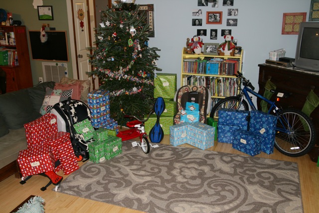 We had a very blessed & calm holiday season….my favorite! I love having six kids at Christmas! For several years we have chosen to give only four gifts to our children for Christmas – something they WANT, something they NEED, something they WEAR, something they READ – and they absolutely LOVE it! We limit what they get and make their gifts a bit more meaningful to instill in them the reason for the season and that it isn’t about getting loads of gifts. This year, however, has been a hard & stressful year and our kiddos have made a lot of sacrifices (all of which are good for them, of course) so we threw in one extra ‘big’ gift for each of them as a thank you for being so amazing! Our children as so precious to us and have hearts of gold. Our Wheaton really needed a new bike as did our JJ (a tricycle) and the twins were in need of new car seats. The other two boys got a Ripstik and a Scooter hybrid thing (still can’t figure out that crazy contraption but it’s pretty cool). We love these kiddos so much – what a blessing they are to us!