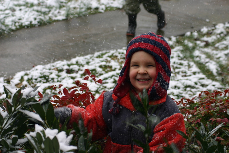 I guess if our boys are going to see snow ever in their childhood we are going to have to haul them to Utah or something. I say Utah because I lived there as a child and OH how pretty and the conditions were perfect for snow play. The snow could be several feet deep, perfectly sticky, and we would be out playing in sweatshirts and blue jeans because it did not feel cold at all. I can’t imagine what life might be like without this Tennessee humidity. So I caught just a few minutes of snow play before it melted and it literally did in a matter of minutes. Jason shoveled some and packed it on a slope to try and form a sliding path but it just didn’t work for us. Maybe next year…