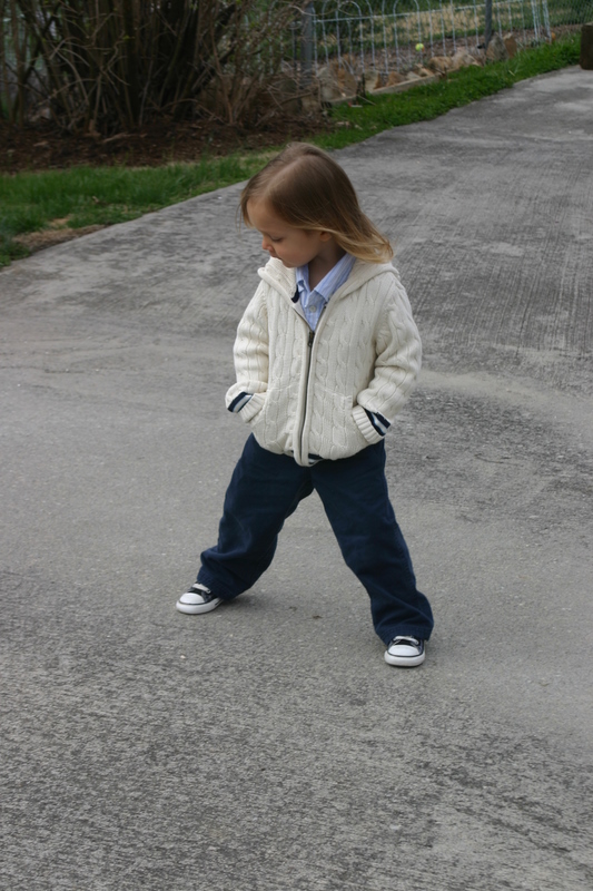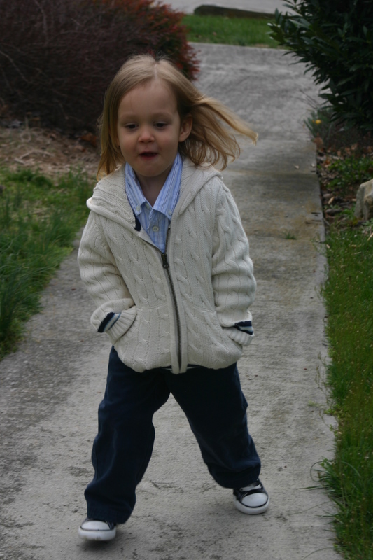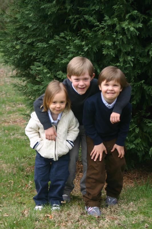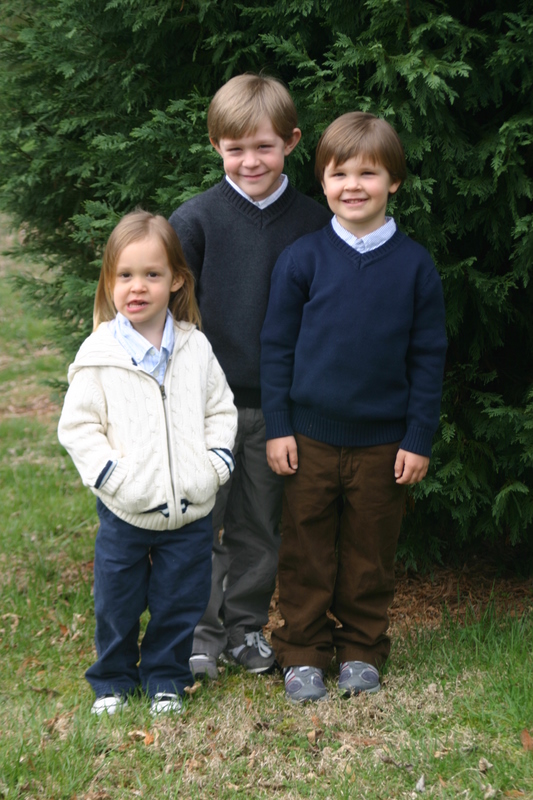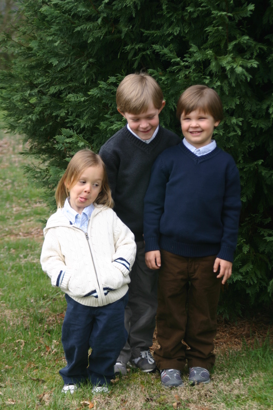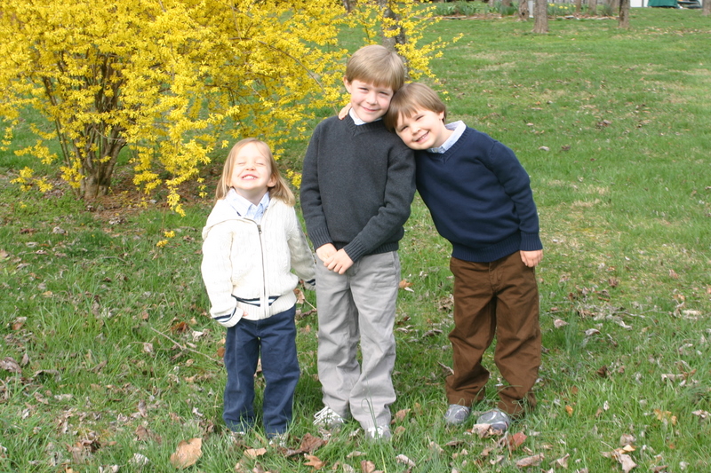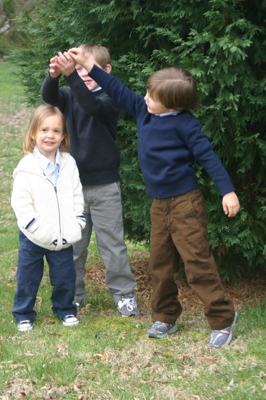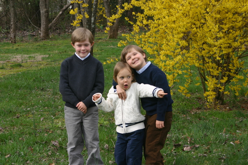 There just won’t be any still, calm, every-child-looking-at-the-camera Easter photos around here…heck, there weren’t even nice outfits until the evening before (courtesy of Gap Kids, hand-me-downs and leftovers from my brothers wedding:). Because our church is extremely casual, our boys do not keep any dress clothes on hand. We had only recently bought them new sneakers so they were still clean and pretty. They all clean up pretty well, I think!