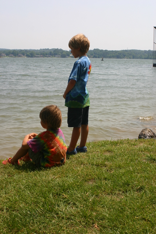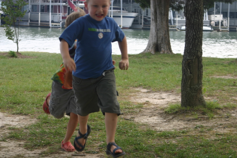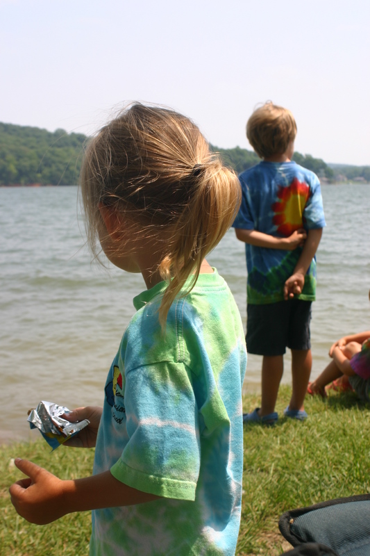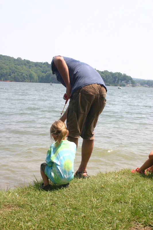 Ok so the camping was just on our back deck and the fishing was at the lake down the road but still a fun couple of days. We decided at the tail end of our beach vacation to top it off with a little tent sleeping and fishing with the kids. This is the first time they have been fishing and they had a blast. Our friends, the Harpers, happened to stumble upon us at the park and Wheat got hold of my camera which explains the odd pictures of water bottles and cheese crackers. He loves taking pictures. The boys each caught a few fish and Lake caught “the one that got away” which probably weighed about 10 pounds, no lie. His little Transformer fishing rod couldn’t hold the weight so it snapped the line. Somewhere in the lake that fish is sitting at a bar with buddies and a fat hook hanging out of his mouth talking about his escape.